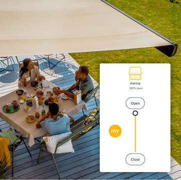 Kada sija sunce i vruće je, vaša se tenda automatski otvara kako bi vaš dom ostao hladan. Ako je oluja, na daljinu provjerite je li tenda zatvorena i po potrebi je namotajte. Tijekom ljetnih vikenda, uredite savršenu terasu stvaranjem scene pomoću svoje povezane pergole ili tende, rasvjete i omiljene glazbe.